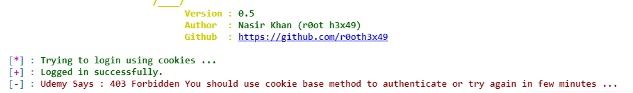 Udemy Says : 403 Forbidden You should use cookie base method to authenticate or try again in few minutes …