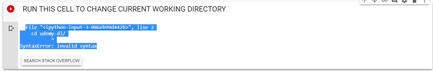 File ââ, line 2 cd udemy-dl/ ^ SyntaxError: invalid syntax