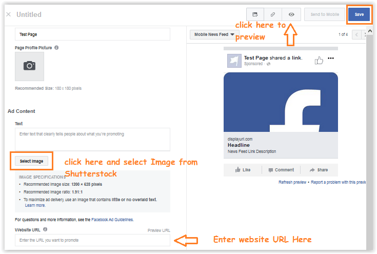 Step 5: Now, just fill the âWebsite URLâ field just below of your âselected Imageâ . you can enter any website URL and click on save button available on the above of the âPreview windowâ. It will ask you to give this mock a name, just named it & click on âSaveâ button.