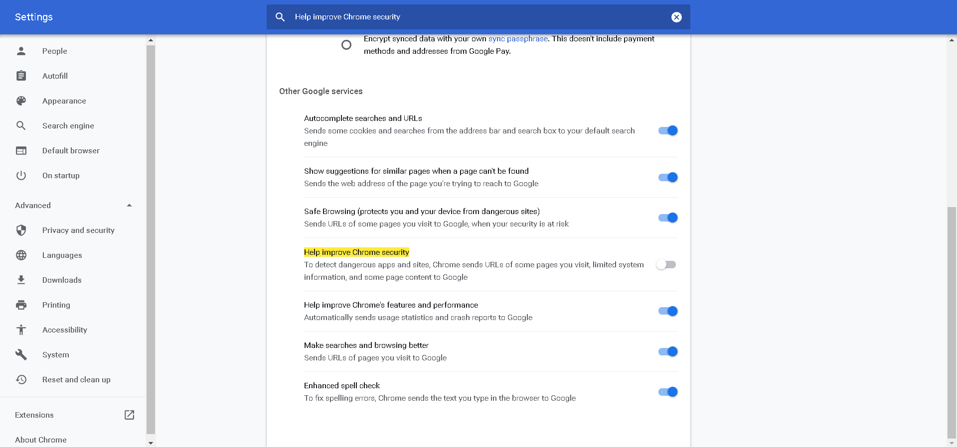 When you want to make sure to benefit from the Google Chrome real-time protection against phishing, turn on the Help improve Chrome security setting.