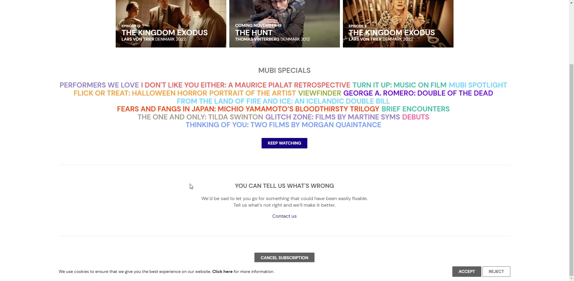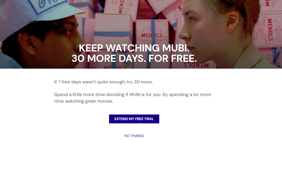 Basically, it’s a method used by mubi to not let go their customer. i.e to retain them, not many are aware of this, and well we are going to abuse their weak marketing strategy now! xD