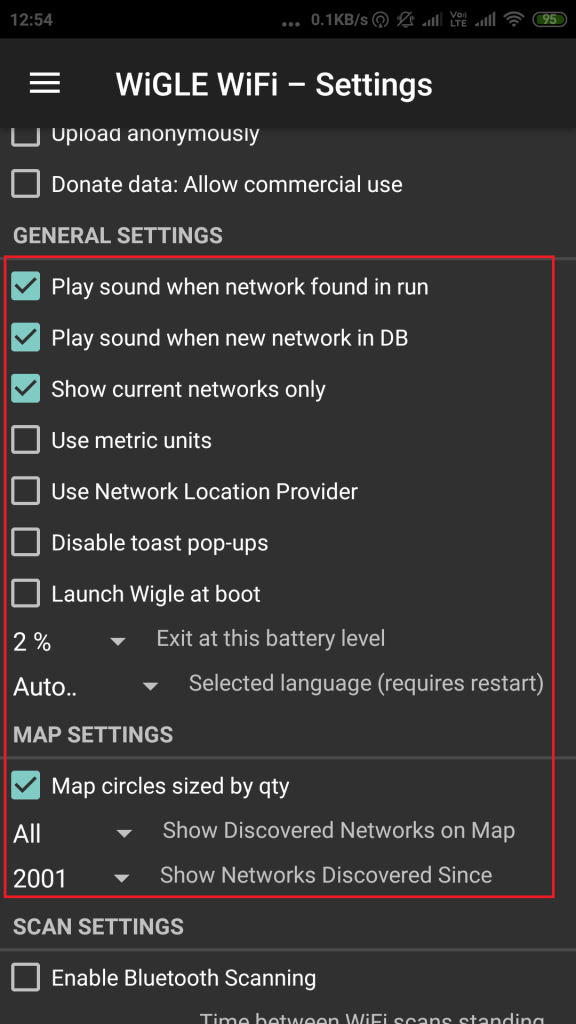 - Going to the Wigle App settings can be configured to use Wigle according to your choice.