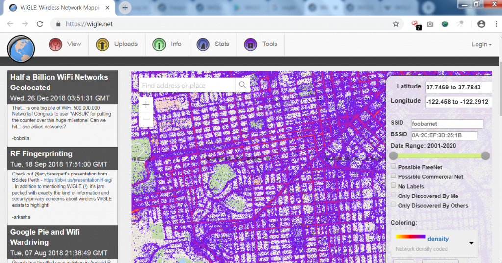 According to ethical hacking researcher of International Institute of Cyber Security, Wigle is useful while scanning for open or free wifi while driving. We can also say that it can be used for wardriving.