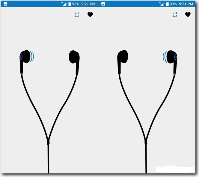 If you are using Android smartphone then you can use a simple app called “Left-Right – Stereo Test” that can detect the headphones for you. All you have to do is plug-in the headphones to your smartphone and launch the app. As you tap on the screen, it will play sound in the left speaker and then in the right one. A visual indication is displayed on your phone’s screen to show which speaker is being targeted. If you want to keep it playing continuously, then you can tap on the repeat icon and it will play non-stop through alternate speakers until stopped.