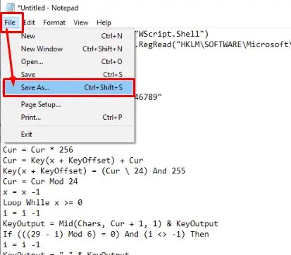 Now, it’s time to save the file in the VBScript format. To do this, click on the “File” from the left corner and then click on “Save As” option.