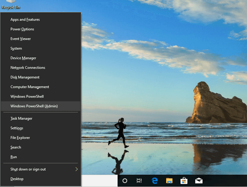 Fire up PowerShell with admin privilege. Press “Win + X” >> select “Windows PowerShell (Admin)” .