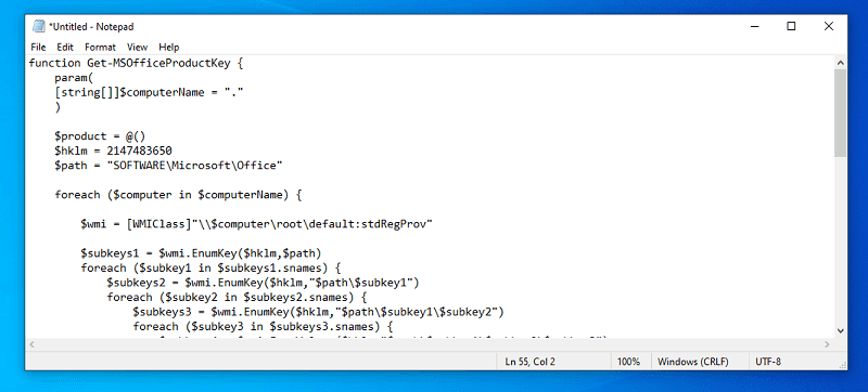 Here’s another way of getting the product key of Office 2016. This requires creating our own PowerShell script to dig out the product key from the system. Don’t worry; it’s not difficult either.