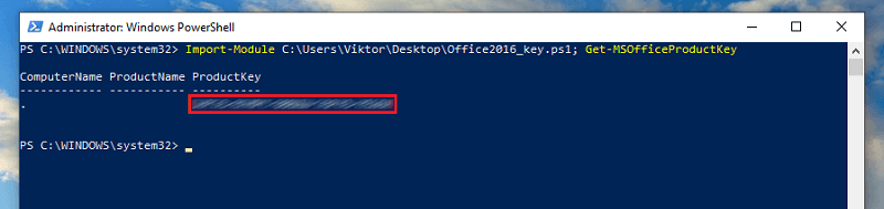 Import-Module C:\Users\Viktor\Desktop\Office2016_key.ps1; Get-MSOfficeProductKey