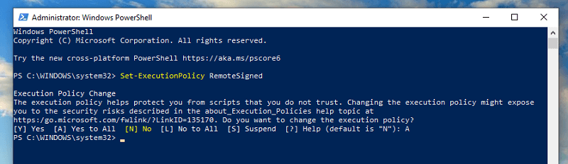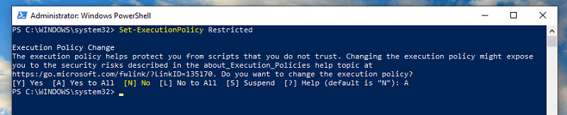 It’s time to revert back the changes to PowerShell. Run the following command.