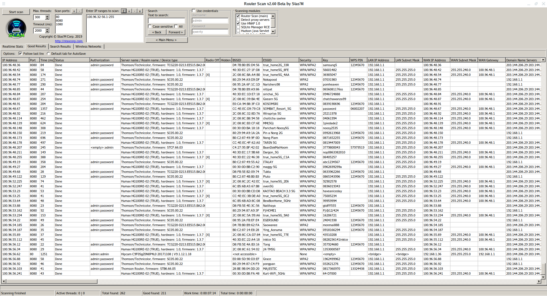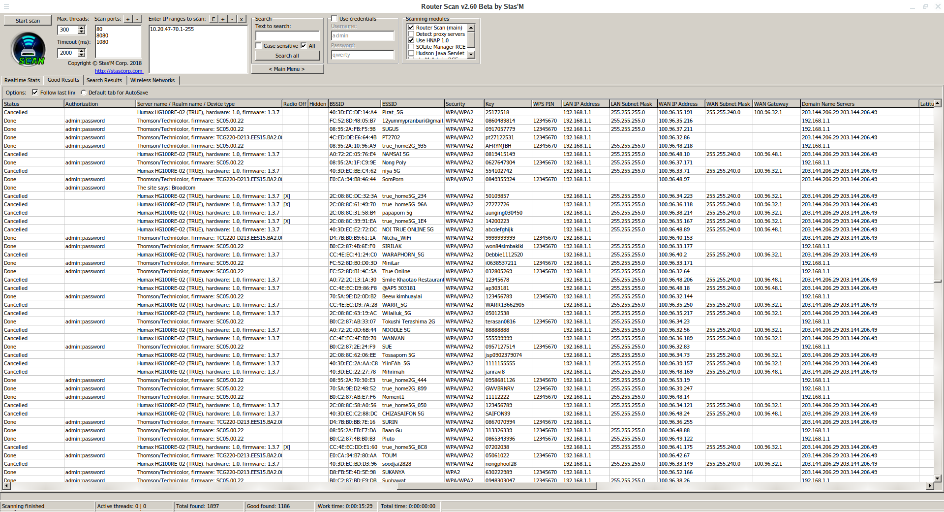 I added these ranges to Router Scan by Stas’M and got about 1200 good results: