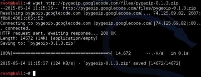kali > wget http://pygeoip.googlecode.com/files/pygeoip-0.1.3.zip