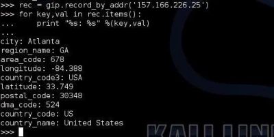 kali > mv GeoLiteCity.dat /pygeoip-0.1.3/GeoLiteCity.dat