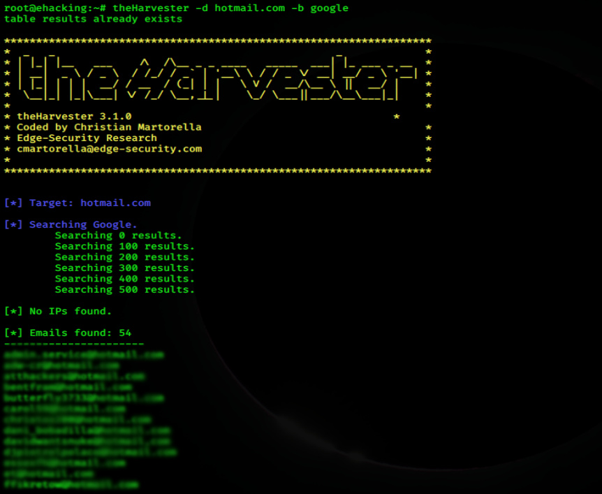 # theHarvester -d hotmail.com -b google