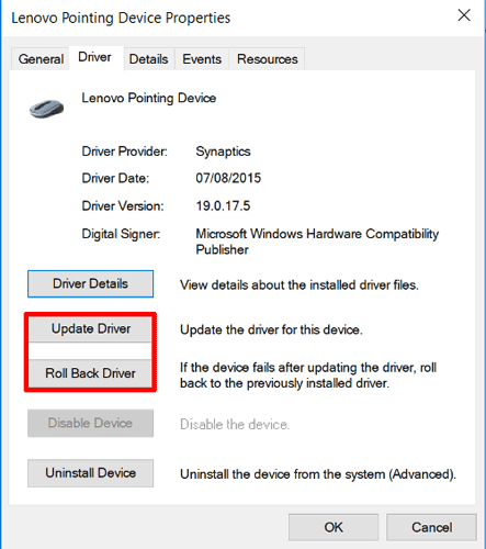 Finally, a lot of people reported that their touchpads stopped working properly after getting Windows 10, which means that the W10 driver for your touchpad may be misbehaving. In Device Manager right-click your touchpad, then click “Properties” and “Roll Back Driver” to see if a previous version of the driver fixes the problem.