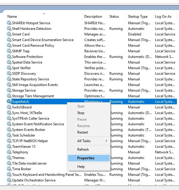 - Now, you can observe all the services listed. You will have to scroll down to find a service named β Superfetch β.