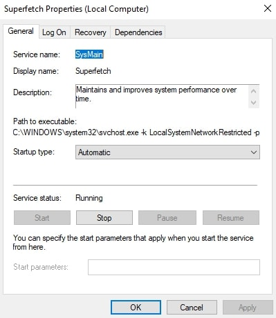 - In the startup type as shown in the image below, set it to β Disabled β i.e when the computer boots up next time, the superfetch service wonβt launch unless you manually start it.