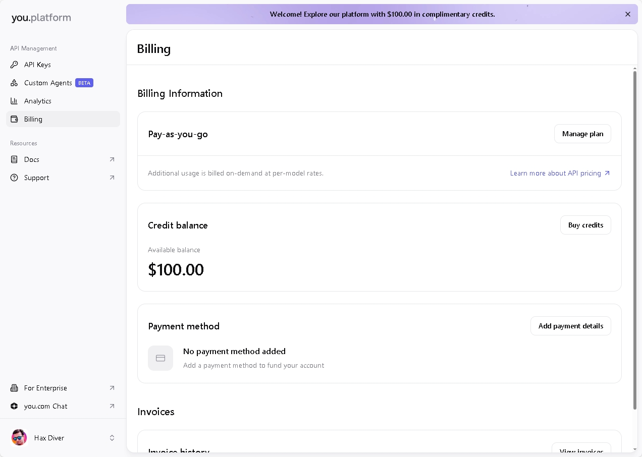 Check your credits (billing) - They should pop up right away. That’s it, you’re all set!