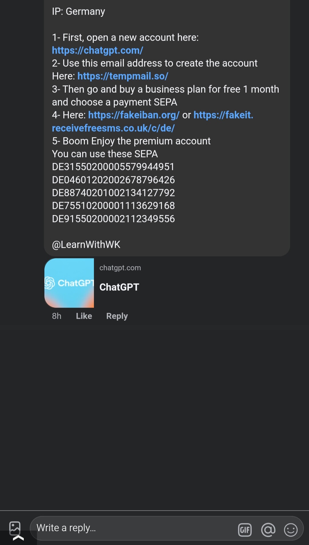 Works It works for exactly 1 day, then the gpt chat deactivates your account. It’s a working but unreliable method.