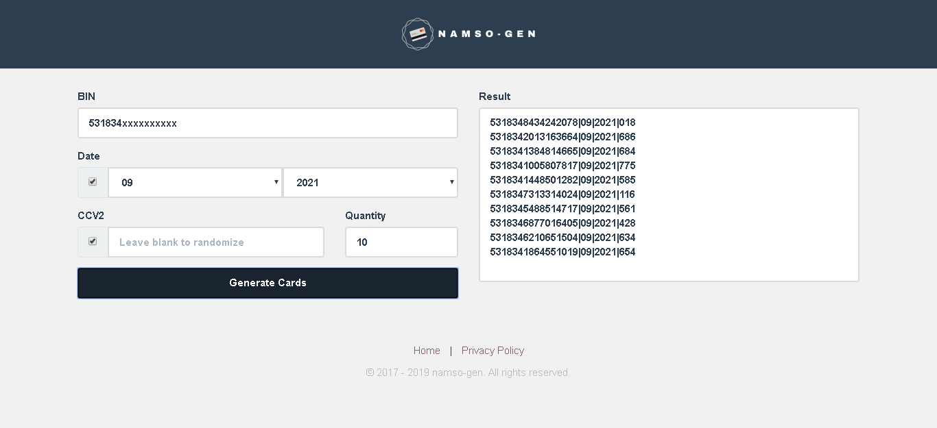 - generate cc from that bin 531834xxxxxxxxxx
