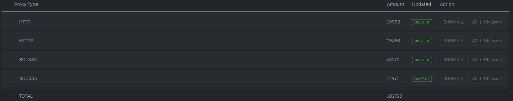 Click on “SHOW ALL” to see all the proxies by the selected proxy type