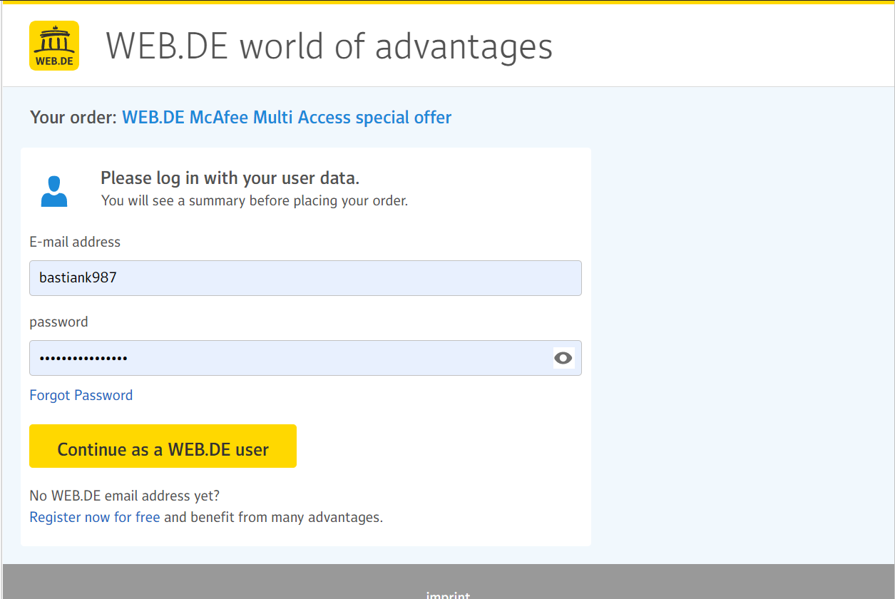 - Now just enter the web.de email. And click on continue as web.de user
