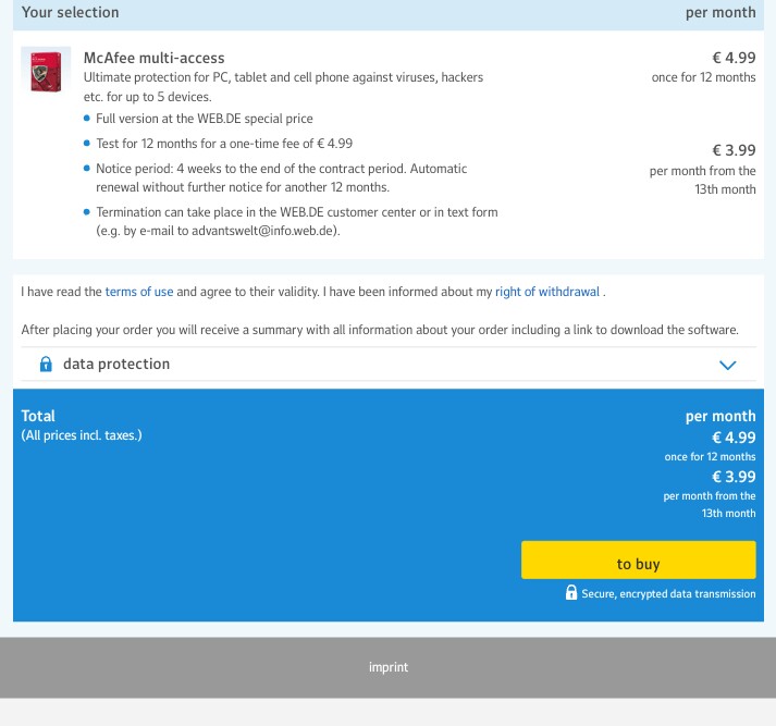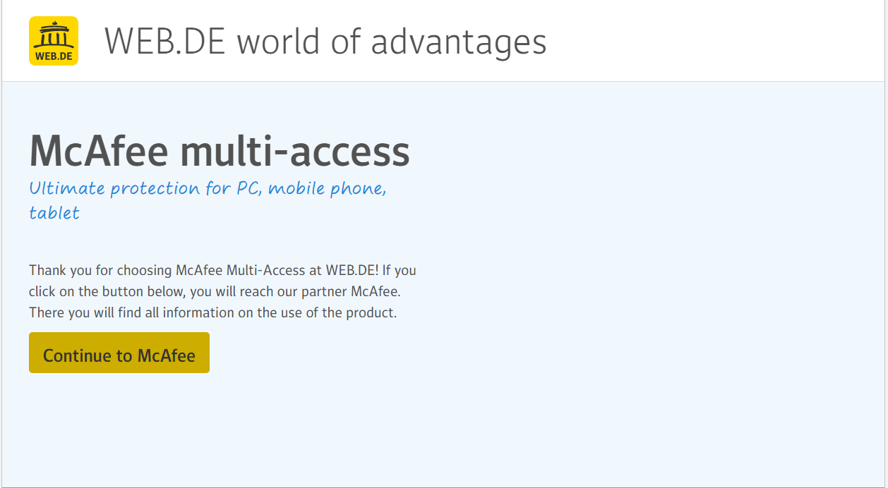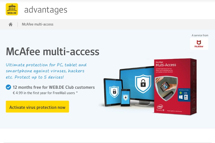 - After you get email from web.de website, Visit the Mcafee website from this link. Click on activate now option.