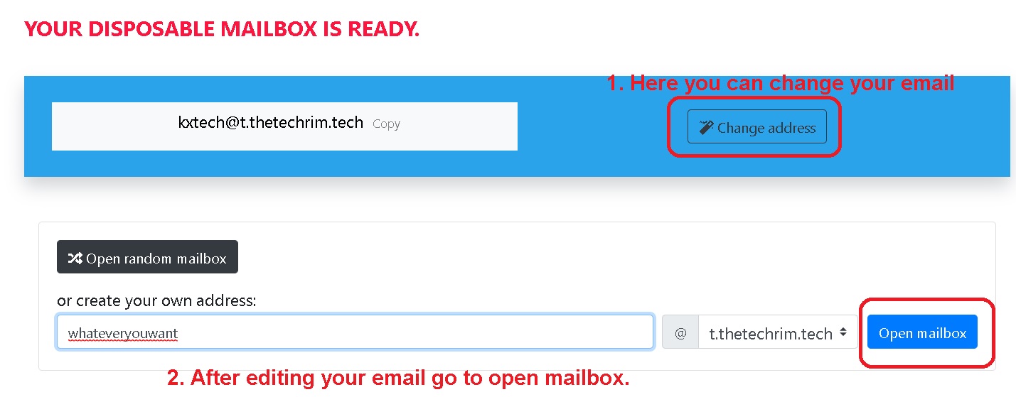 In case you wanna edit your own email go to change address and after editing it you go to “Open Mailbox”