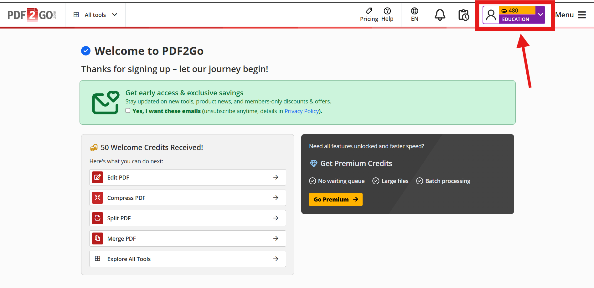 Done!!! You got **the PDF2Go EDU Student Plan free for 1 year.
