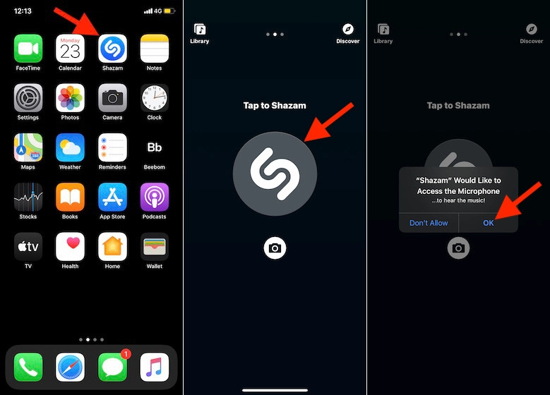Note: Just in case, you are using the app for the first time, you will need to first identify a song by hitting the Shazam icon in the middle of the screen. Once the song has been identified, you will get the option to open it in the Apple Music app. After that, you can follow from step 3 to get the subscription.