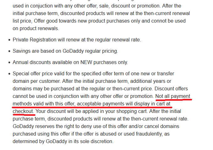 If you check the “View offer disclaimer” during the payment it clearly mentions that “Not all payment methods valid with this offer, acceptable payments will display in cart at checkout”.