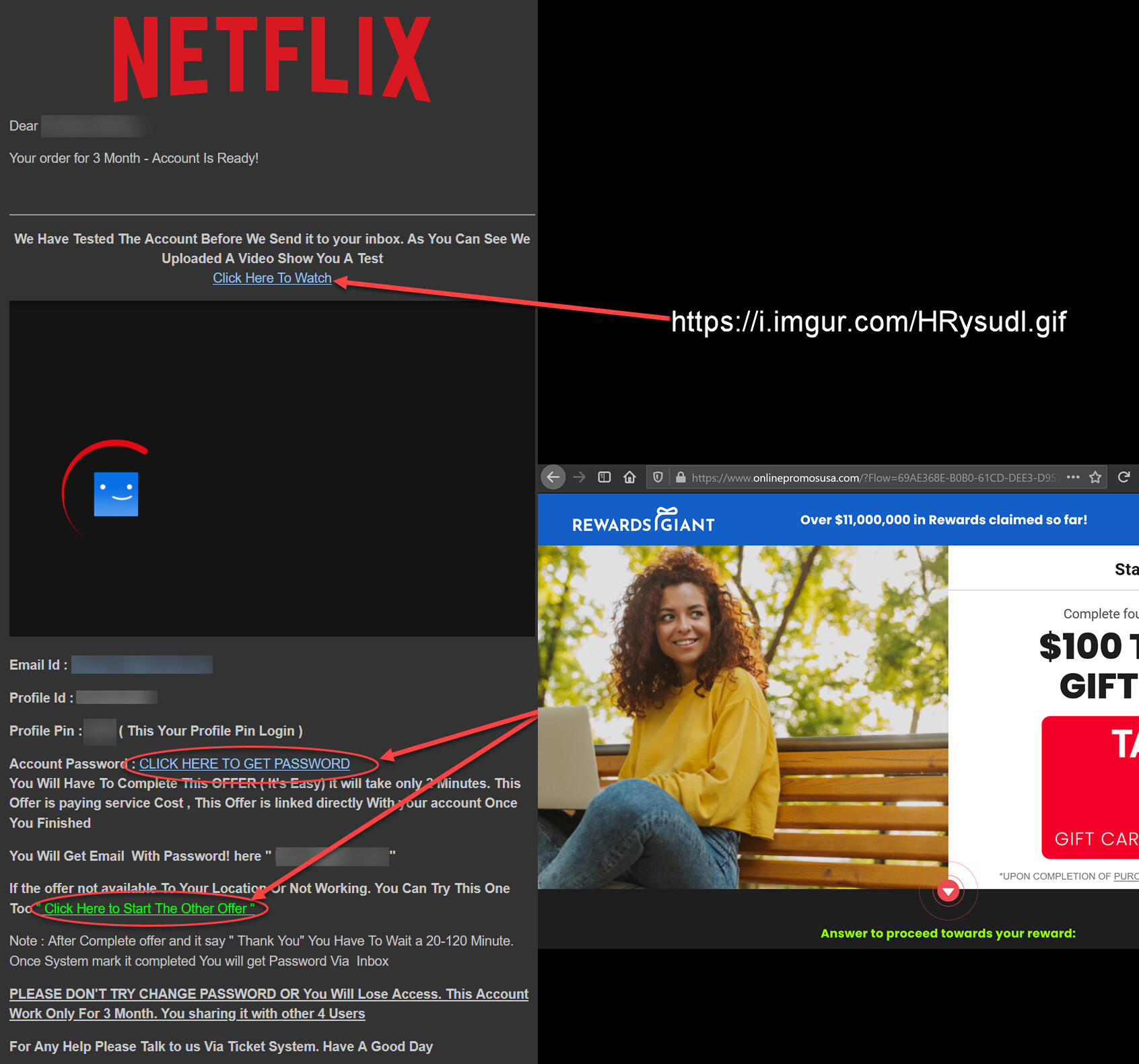 tht web page doesnt even opens they just took our emails that click here to watch is a giff and it proves nothing i dont know did someone got the account i dont undersatnd why do they want us to complete promo surveys etc