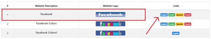 After you successfully log in to the site, you will see a list of facebook logos and the links with different languages.