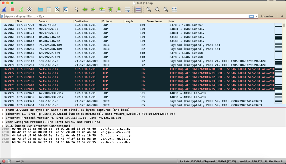 As soon as I initiated the ettercap, tons and tons of traffic was passing through on my terminal screen. I saved it all to the test.cap so that I can later on go through each and every packet on my device using Wireshark for detailed inspection.