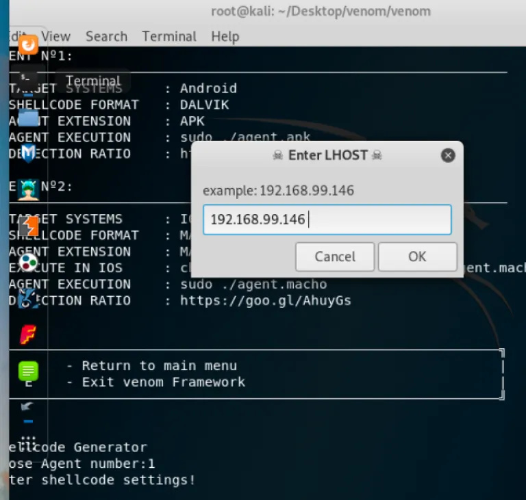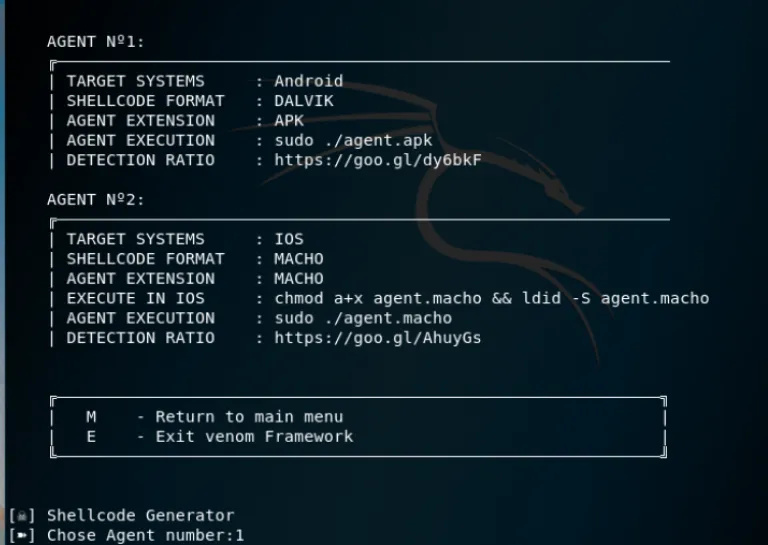 Now we have to choose the agent number as 1, Because we are targeting the android system