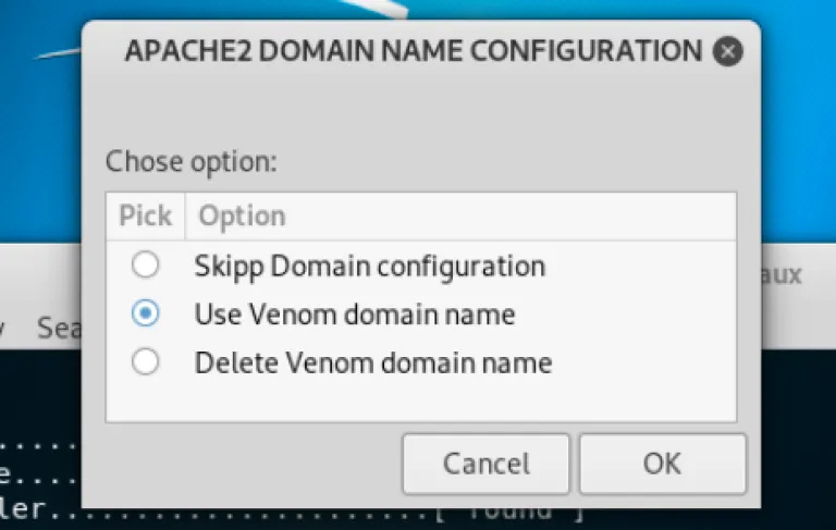it may also ask you for the apache2 full path follow the same process and choose the venom domain