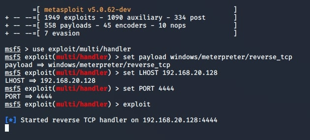 Step 6: Now we need to set the listener for the Payload, to do that run the following command in the kali Linux terminal:
