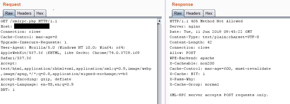 - Its says âMethod Not Allowedâ because xmlprc.php use POST method rather than the GET method, We have to change the method of the request.