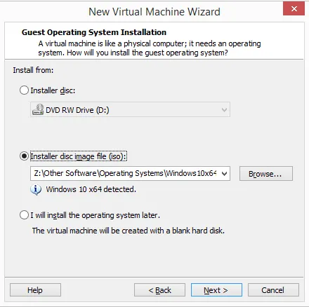 Step 10 : Follow the directions for your specific operating system install to add the OS to VMware Workstation.