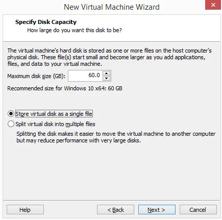 In other words, if you plan to store lots of data in this VM, select the “single file” option, otherwise go with “multiple files.”
