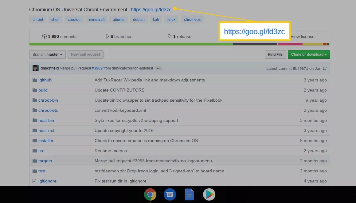 Click on the goo.gl link, located directly to the right of the Chromium OS Universal Chroot Environment header.
