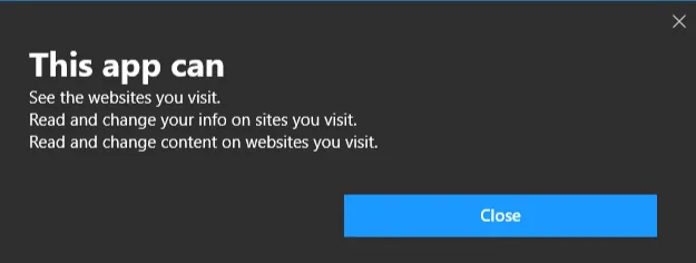This permission system is much the same for both Chrome and Firefox. On Microsoft Edge, you need to be extra careful. Permissions are granted, but they go through the Microsoft Store first, which means you will have scroll down to read the permissions first. There’s no warning when you press install.