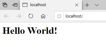 - You’ll see a web page like the following. Notice in the address bar that it says localhost . That’s the address to type in to go to your new website.