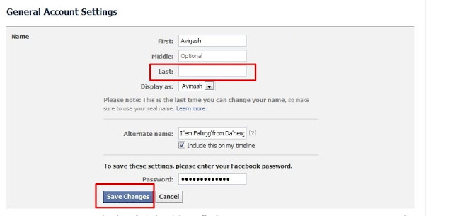 Step 5: Now open your Name settings in your Fb. Simply remove your last name or leave it as empty and then click ‘ Save Changes ‘.