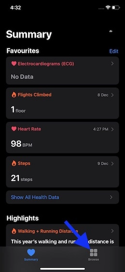 - Launch Health app on your paired iPhone.