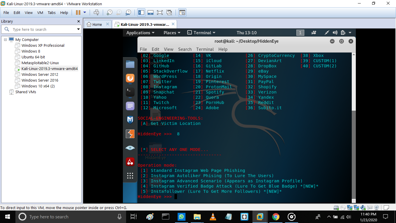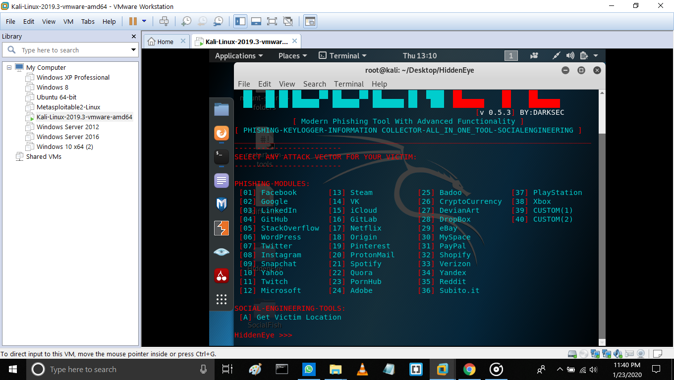 Which shows phishing-modules like Facebook, Instagram