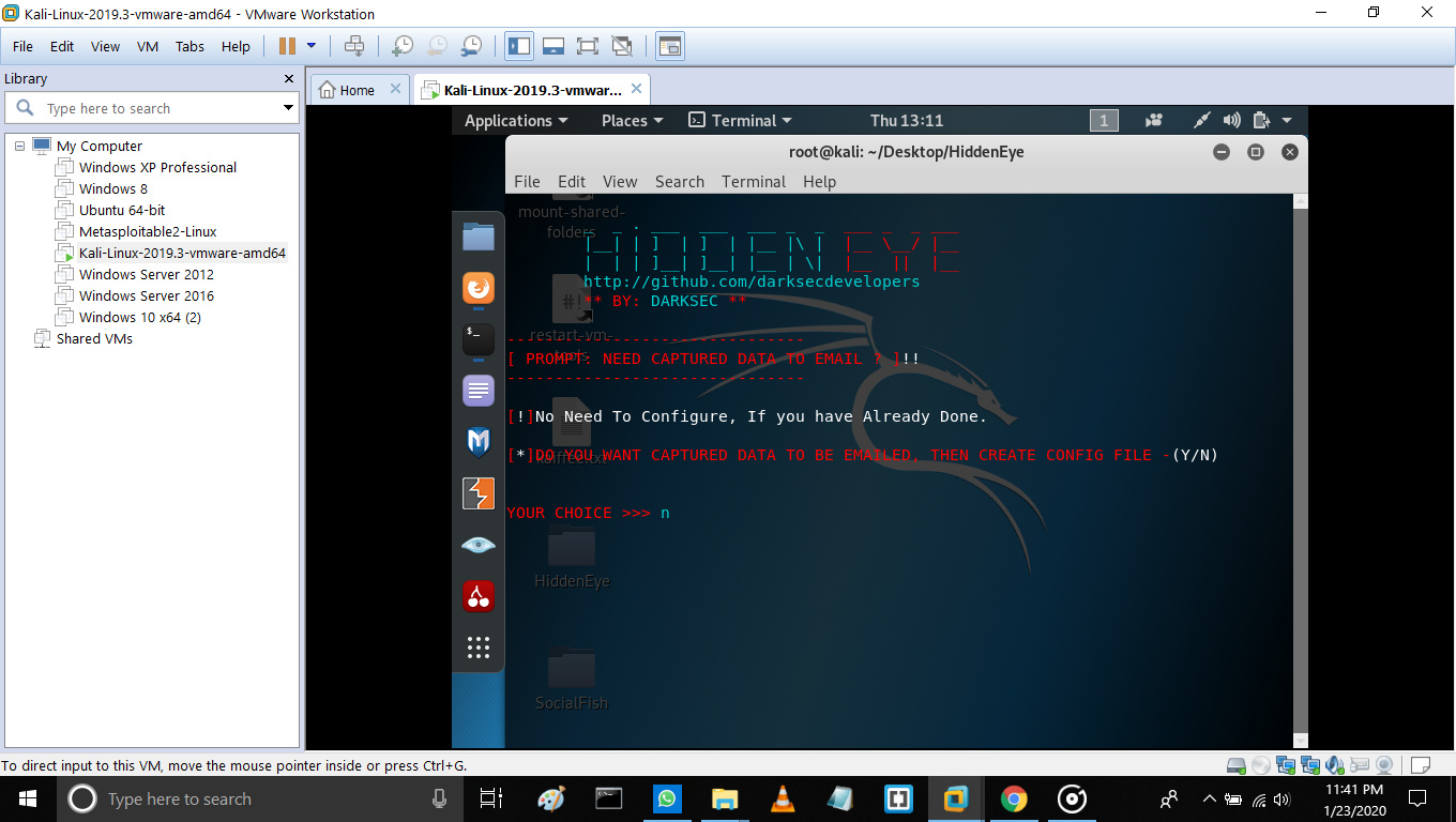 If you enter ‘y’ then you have to give your email where the phished data should be mailed.