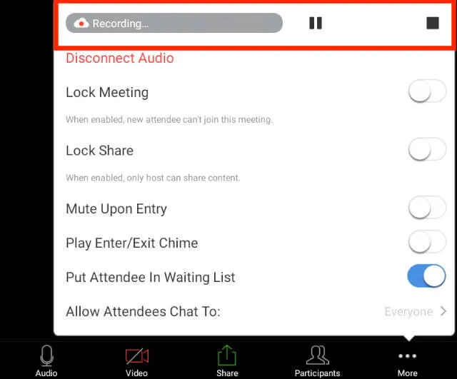 - You will see a notice that you’re Recording at the top right-hand of your screen