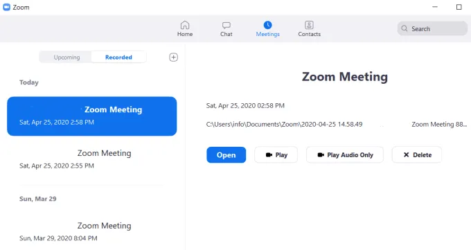 There are two types of Zoom meeting recordings: Cloud Recordings and Local Recordings.