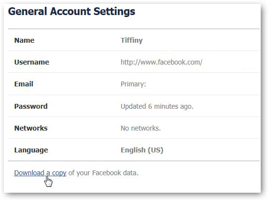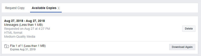 - Click on “Download a copy of your Facebook data” at the bottom of the page.